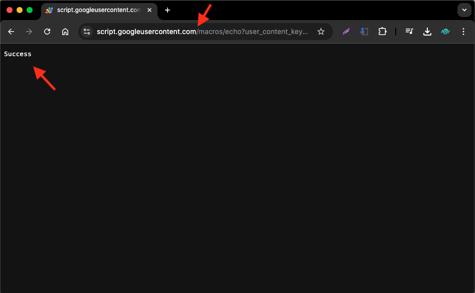 return ContentService.createTextOutput("Success");