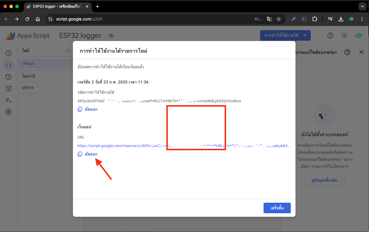 • (ไม่ต้องตกใจ เป็นขั้นตอนปกติของ Google เมื่อรันสคริปต์เอง)