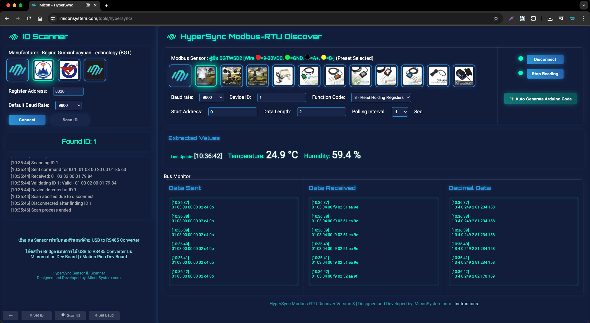 ชุดพร้อมทดสอบหรือใช้งานง่ายๆผ่าน HyperSync Modbus-RTU Discover