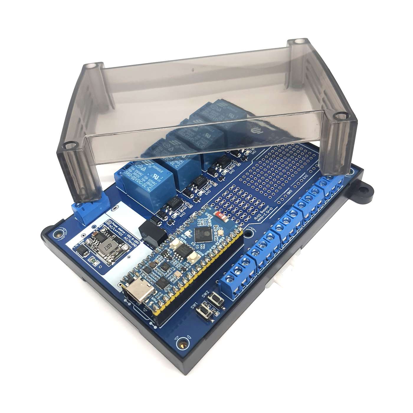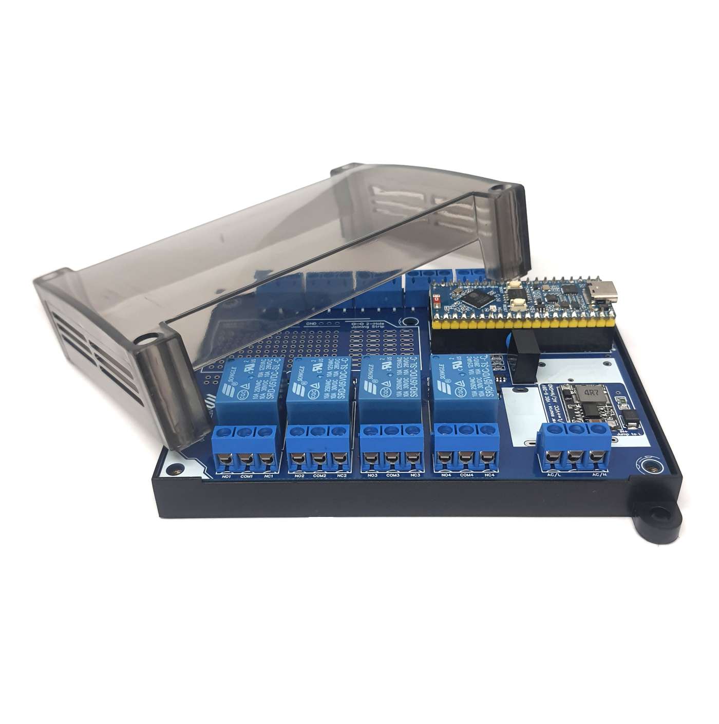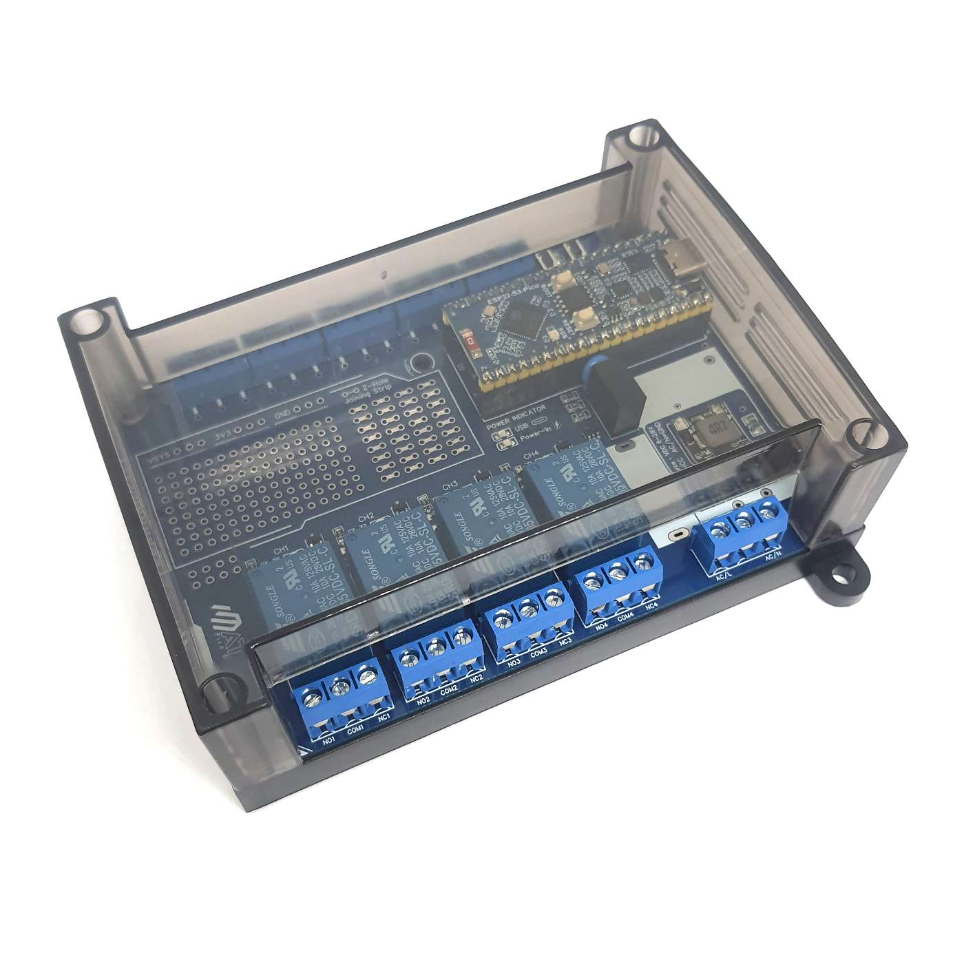 บอร์ดรีเลย์ 4 Channel สำหรับพัฒนางานอเนกประสงค์ สามารถใช้เพื่อการเรียนรู้การเขียนโปรแกรมไมโครคอนโทรลเลอร์ พัฒนาโครงการต้นแบบ และการประยุกต์เพื่อการใช้งานจริง พร้อมไมโครคอนโทรลเลอร์ ESP32-S3 Pico มีจัดการพลังงาน เพิ่มความปลอดภัย ลดความซับซ้อน ใช้งานง่าย มีความสะดวกในการใช้งานมากยิ่งขึ้น