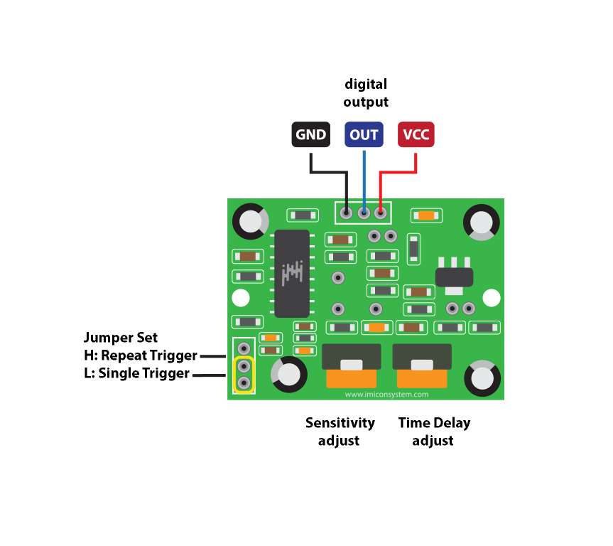 • ปรับเวลาหน่วง (Time Delay): กำหนดระยะเวลาที่สัญญาณขาออกจะคงอยู่หลังตรวจจับได้เคลื่อนไหว