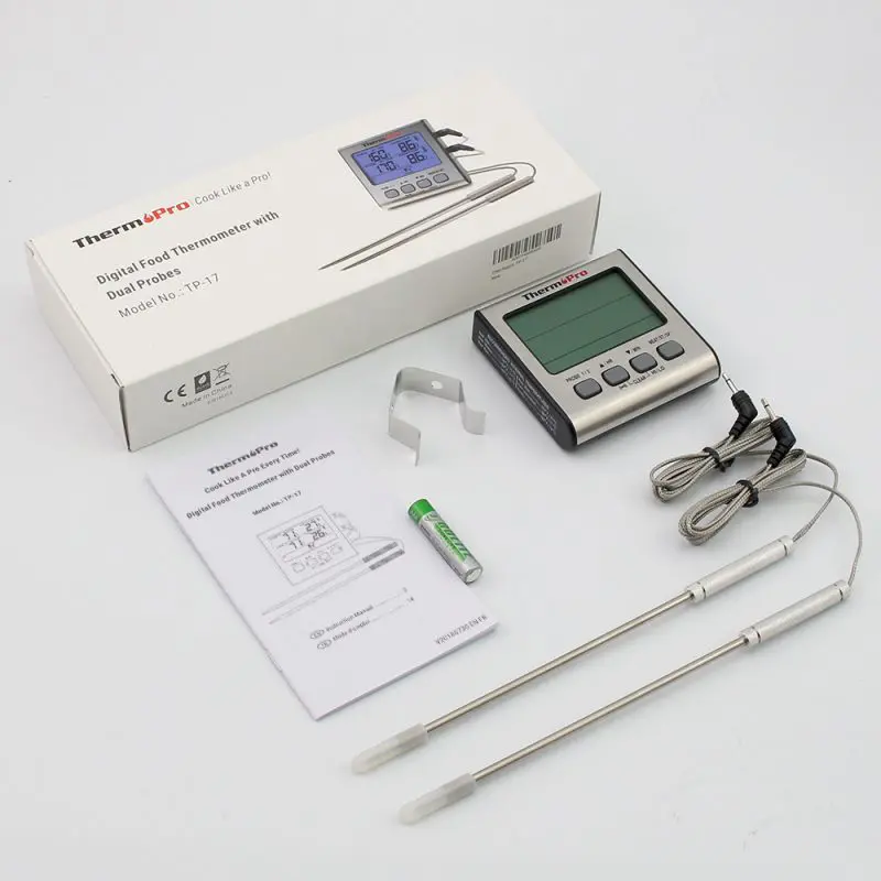 ThermoPro TP17 เครื่องวัดอุณหภูมิแบบ Dual Probe พร้อมแท่งเซนเซอร์วัดอุณหภูมิทำจากวัสดุ Food Grade Stainless Steel จำนวน 2 ชุด
