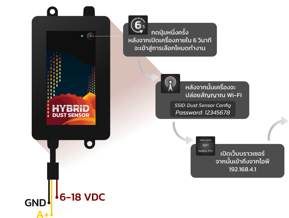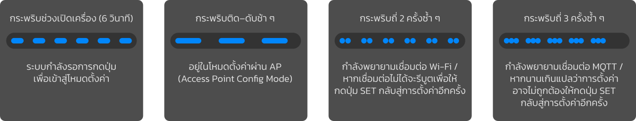 - เริ่มทำงานหลังเปิดเครื่อง 6 วินาที เพื่อรอการกดปุ่มสำหรับเข้าสู่โหมดตั้งค่า (AP Mode)