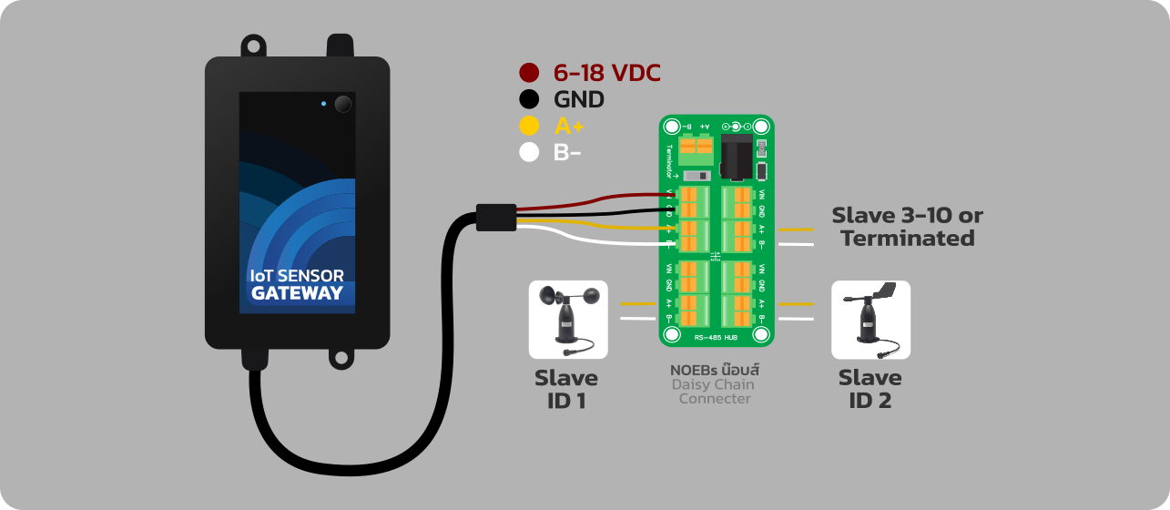 - Slave Support: 1-10 devices (ต่อเซ็นเซอร์ได้สูงสุด 10 ตัว)