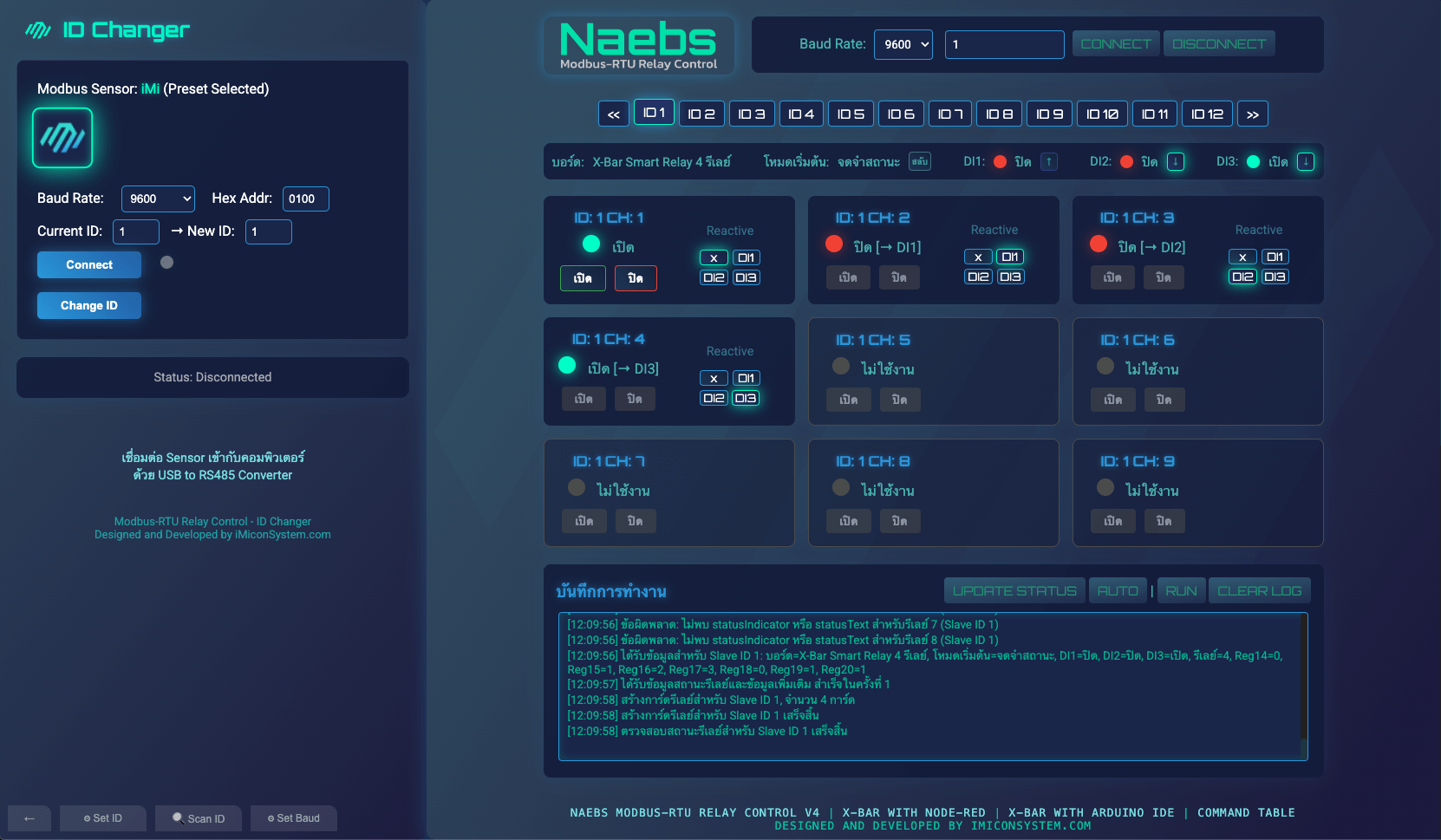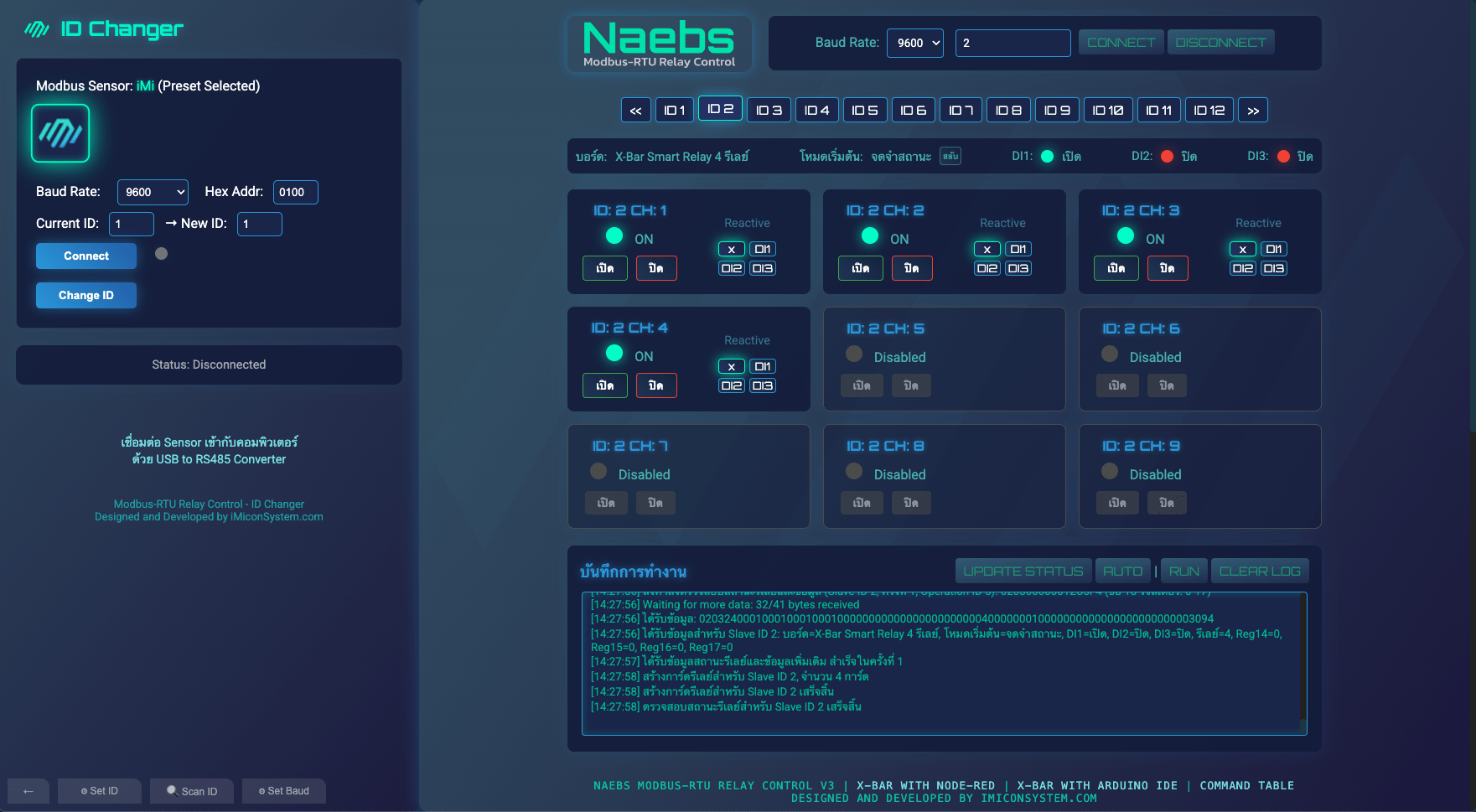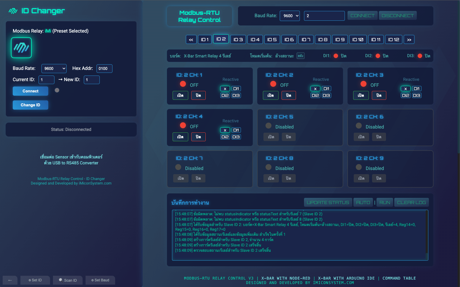 - เมื่อเลือก ID แล้ว การ์ดรีเลย์จะแสดงขึ้น (สูงสุด 9 ช่อง ขึ้นอยู่กับบอร์ด)