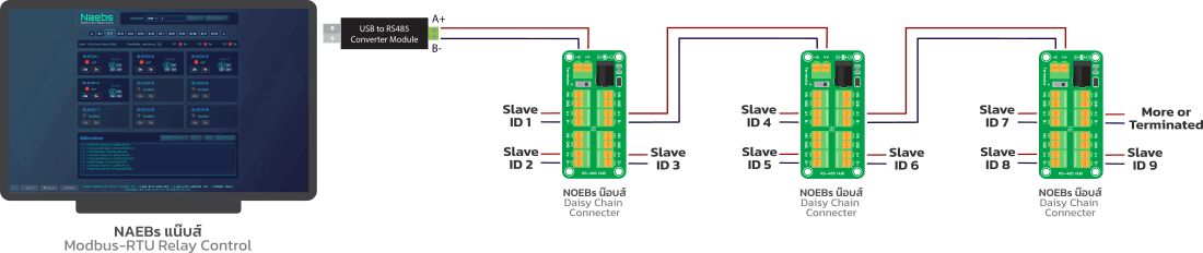 รูปแบบการต่อขยายด้วย Noebs น๊อบส์ | RS485 Daisy Chain Connecter